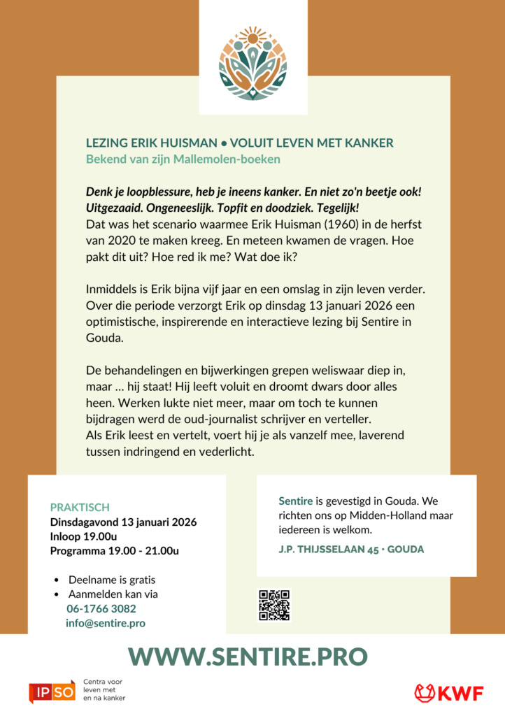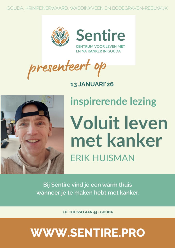 Inspirerende lezing “Voluit leven met kanker” 13 januari 2026 i.s.m. Erik HuismanDoor admin / december 30, 2025